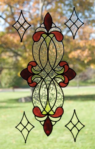 Inspired by the timeless beauty of stained glass, Brewster Home Fashions’ "Stained Glass Appliqués" truly replicate the look and feel of authentic stained glass. Handcrafted, 3-dimensional, and easy to apply, these self-cling stained glass replications will transform a simple window space into a focal point, create an elegant entrance way, add privacy to any room, or a period look to glass cabinetry. "Stained Glass Appliqués" have been designed to fit just about any window style. Use alone or add caming lines to create your own personalized, illuminated window decoration. Perfect for crafters, it adds that spectacular aura that only stained glass can offer.